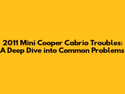 Hey there, car enthusiasts! Today, we're diving into the world of the 2011 Mini Cooper Cabrio, a car that's known for its fun-to-drive nature and iconic style. But like any car, the 2011 Mini Cooper Cabrio isn't without its quirks and potential problems. This article is all about helping you understand the common issues you might face with this model, so you can make informed decisions about maintenance, repairs, or even a potential purchase. We'll explore everything from engine troubles to electrical gremlins, covering the areas where the 2011 Mini Cooper Cabrio might need some extra attention. Let's get started!