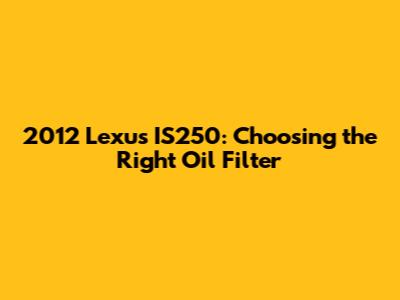 Hey there, car enthusiasts! If you're cruising around in a 2012 Lexus IS250, you know you've got a sweet ride. But keeping that beauty running smoothly means taking care of the basics, and one of the most crucial is the oil filter. Choosing the right oil filter isn't just about picking any old part; it's about protecting your engine and ensuring your Lexus keeps purring for years to come. So, let's dive into the world of oil filters and figure out what you need to know for your 2012 IS250.