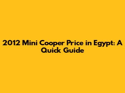 2012 Mini Cooper Price In Egypt: A Quick Guide