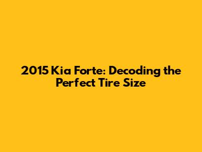 Decoding the 2015 Kia Forte Tire Sizes: A Comprehensive Guide