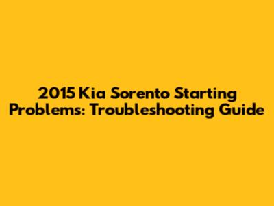 2015 Kia Sorento Starting Issues: Troubleshooting Guide