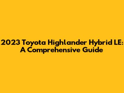 2023 Toyota Highlander Hybrid LE: A Comprehensive Guide