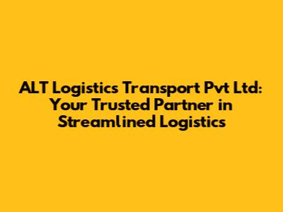 In today's fast-paced business environment, efficient and reliable logistics are crucial for success. ALT Logistics Transport Pvt Ltd emerges as a prominent player, offering a comprehensive suite of logistics solutions designed to meet the diverse needs of businesses across various industries. Let's dive deep into what makes ALT Logistics a trusted partner and how they can streamline your supply chain.