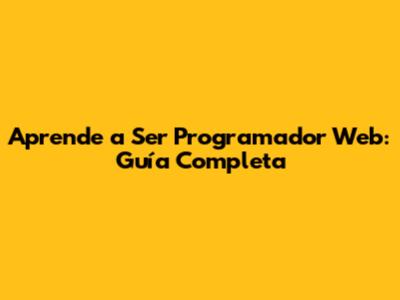 Aprende A Ser Programador Web: Guía Completa