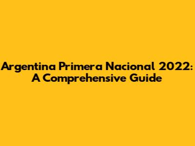 Argentina Primera Nacional 2022: A Comprehensive Guide