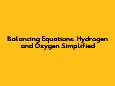 Balancing Equations: Hydrogen And Oxygen Simplified