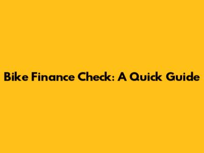 Bike Finance Check: A Quick Guide