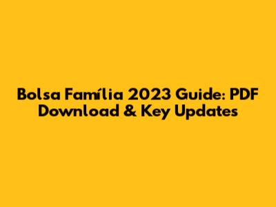 Bolsa Família 2023 Guide: PDF Download & Key Updates