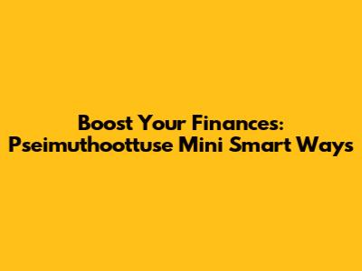 Boost Your Finances: Pseimuthoottuse Mini Smart Ways