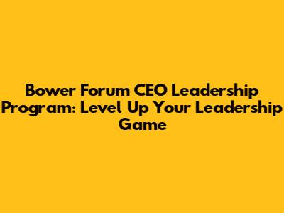 Bower Forum CEO Leadership: Boost Your Leadership Skills