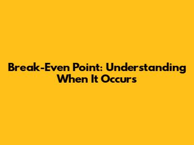 Break-Even Point: Understanding When It Occurs