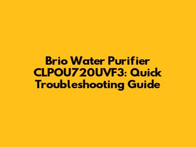 Brio Water Purifier CLPOU720UVF3: Quick Troubleshooting Guide
