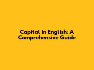 Capital In English: A Comprehensive Guide