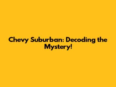 Chevy Suburban: Decoding The Mystery!