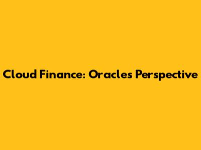Cloud Finance: Oracle's Perspective