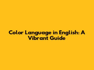Color Language In English: A Vibrant Guide