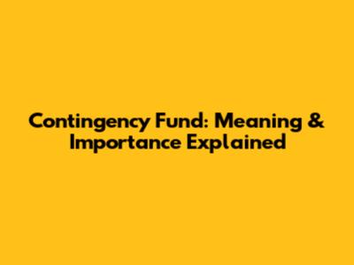 Contingency Fund: Meaning & Importance Explained