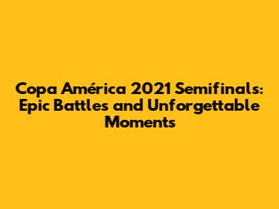 Copa América 2021 Semifinals: Epic Battles And Unforgettable Moments