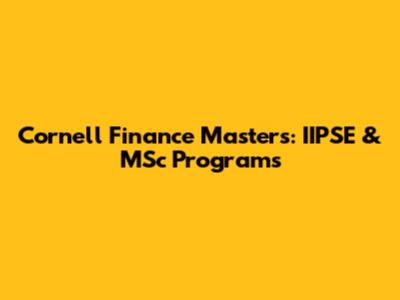 Cornell Finance Masters: IIPSE & MSc Programs