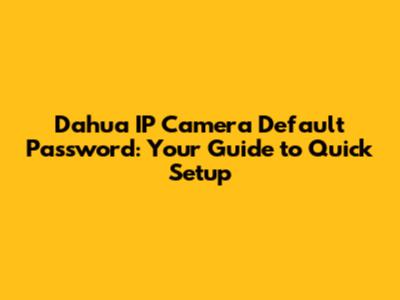 Dahua IP Camera Default Password: Your Guide To Quick Setup