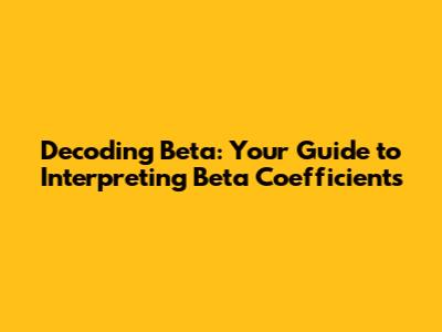 Decoding Beta: Your Guide To Interpreting Beta Coefficients