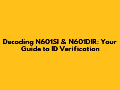 Decoding N601SI & N601DIR: Your Guide To ID Verification