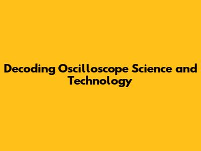 Decoding Oscilloscope Science And Technology