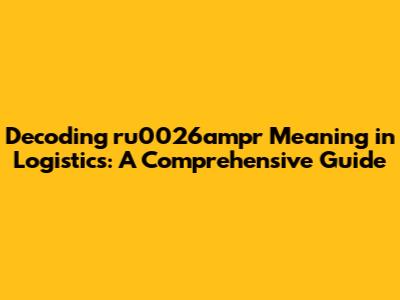 Have you ever stumbled upon the term ru0026ampr in the world of logistics and felt completely lost? You're not alone! Logistics, with its own unique jargon and acronyms, can sometimes feel like learning a new language. In this comprehensive guide, we'll break down what ru0026ampr actually means, where you're likely to encounter it, and why it's important to understand it. So, let's dive in and demystify this potentially confusing term.