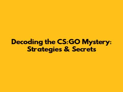 Decoding The CS:GO Mystery: Strategies & Secrets