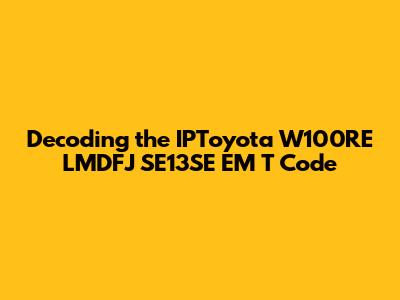 Decoding The IPToyota W100RE LMDFJ SE13SE EM T Code