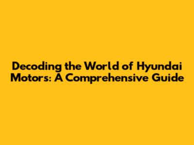 Decoding The World Of Hyundai Motors: A Comprehensive Guide