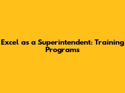 Excel As A Superintendent: Training Programs