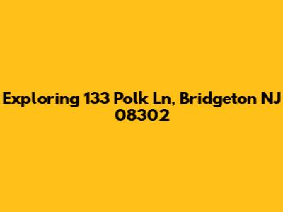 Hey there, real estate enthusiasts and curious minds! Today, we're diving deep into the property located at 133 Polk Lane, Bridgeton, NJ 08302. This isn't just a random address; it's a potential home, a possible investment, or maybe just a point of interest for you. Let's break down everything you might want to know about this spot, from its location and local area to what makes it tick.