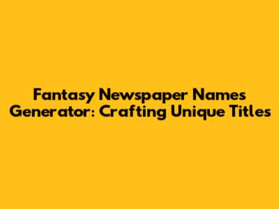 Fantasy Newspaper Names Generator: Crafting Unique Titles