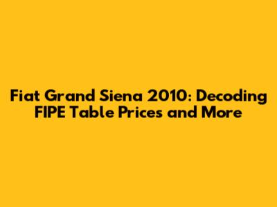 Hey guys! Are you digging into the Fiat Grand Siena 2010 and trying to make sense of the FIPE table? You've come to the right place! Let's break down everything you need to know about this car, its pricing, and what makes it a solid choice. We will cover everything from FIPE table insights to real-world value assessments, ensuring you have a complete understanding before making any decisions. Understanding the FIPE table is crucial when evaluating the fair market value of a used car, so let's dive in and unravel the mysteries of the Fiat Grand Siena 2010! This guide will provide a clear understanding of how to interpret the FIPE table data and how it relates to the actual market value of the car. We will explore various factors that influence the final price, such as condition, mileage, and additional features, to help you make an informed decision. By the end of this article, you'll have all the necessary information to confidently navigate the used car market and secure the best possible deal for your Fiat Grand Siena 2010.