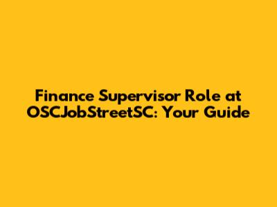 Finance Supervisor Role At OSCJobStreetSC: Your Guide