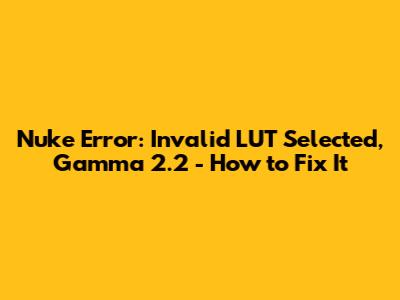 The most common cause of the “Invalid LUT selected, gamma 2.2” error is simply that Nuke can't find the LUT file. This could be because the file has been moved, renamed, or deleted. It could also be because the file path specified in your Nuke settings is incorrect. To fix this: