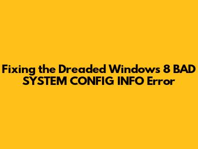 Hey guys, ever run into that super frustrating BAD_SYSTEM_CONFIG_INFO error on your Windows 8 machine? Yeah, it's a real pain in the neck, right? It usually pops up as a Blue Screen of Death (BSOD), and it basically tells you that your system configuration is messed up. This can happen for a bunch of reasons, from a recent software installation that went sideways to a hardware issue that's decided to make an appearance. The good news is, most of the time, this is a fixable problem, and we're going to walk through some of the most effective ways to get your Windows 8 system back up and running smoothly. Don't panic, we've got this!