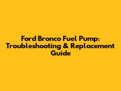 Ford Bronco Fuel Pump: Troubleshooting & Replacement Guide