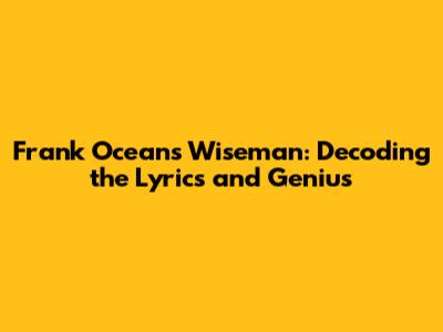 Frank Ocean's Wiseman: Decoding The Lyrics And Genius