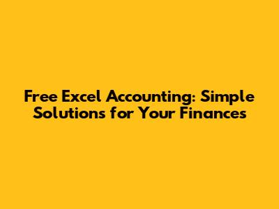 Free Excel Accounting: Simple Solutions For Your Finances