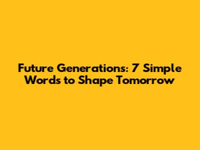 Future Generations: 7 Simple Words To Shape Tomorrow