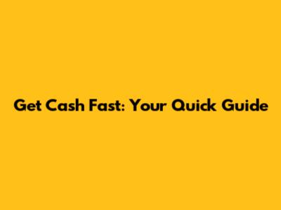 Get Cash Fast: Your Quick Guide