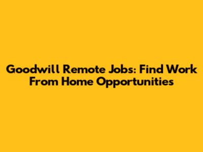 Goodwill Remote Jobs: Find Work From Home Opportunities
