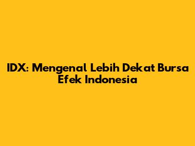 Bursa Efek Indonesia (IDX), atau dalam bahasa Inggris disebut Indonesia Stock Exchange (IDX), adalah pasar modal tempat bertemunya para investor dan perusahaan yang mencari modal. Singkatnya, ini adalah tempat di mana saham-saham perusahaan diperdagangkan. Jadi, kalau kalian pengen punya sebagian kecil kepemilikan di perusahaan besar seperti Telkom, Astra, atau Unilever, kalian bisa membelinya melalui IDX.
