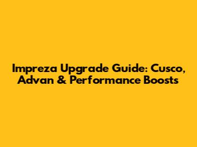 Impreza Upgrade Guide: Cusco, Advan & Performance Boosts