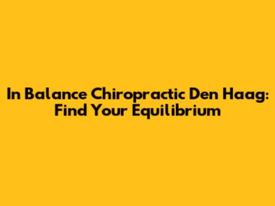 Hey guys! Are you searching for chiropractic care in Den Haag? Look no further! In Balance Chiropractic is your go-to place for finding that sweet spot of well-being. Whether you're dealing with nagging back pain, stiff necks, or just feeling out of whack, these folks are dedicated to helping you restore your body's natural balance. They understand that every spine is unique, and every person deserves personalized care. So, let's dive into what makes In Balance Chiropractic a standout choice in Den Haag.