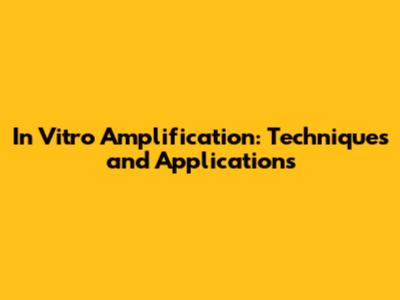 In Vitro Amplification: Techniques And Applications