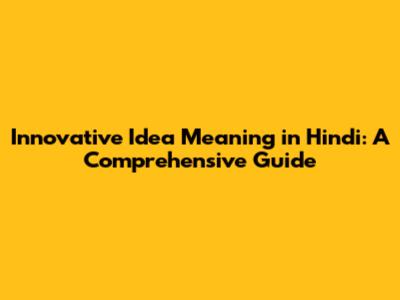 Innovative Idea: Hindi Meaning & Examples