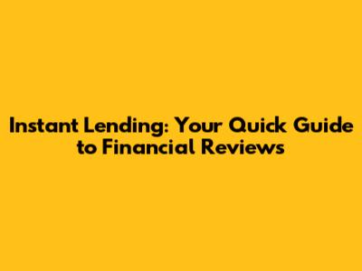 Instant Lending: Your Quick Guide To Financial Reviews